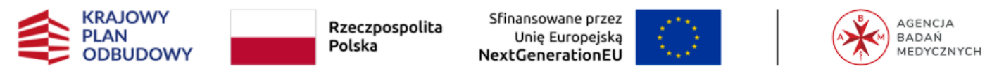 Projekt współfinansowany przez Agencję Badań Medycznych w ramach Krajowego Planu Odbudowy i Zwiększania Odporności, Komponent D Efektywność, dostępność i jakość systemu ochrony zdrowia, Inwestycja D3.1.1 Kompleksowy rozwój badań w zakresie nauk medycznych i nauk o zdrowiu